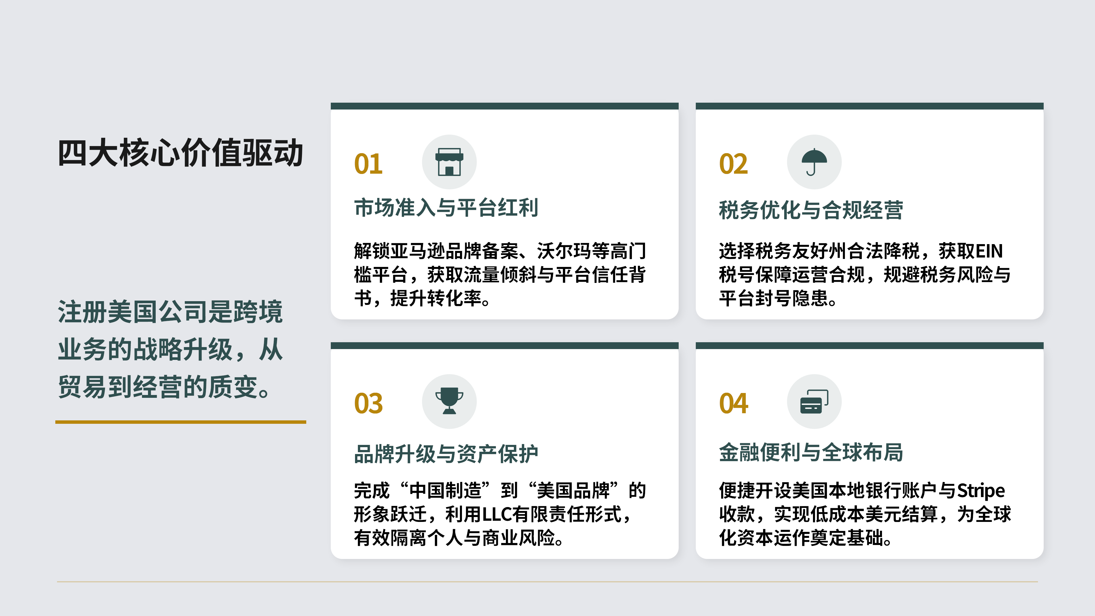 用美国公司布局跨境,品牌更可信,支付更顺畅,轻松拿下全球最大消费市场。