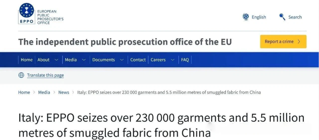 在欧洲检察官办公室(EPPO)的跨境协调下,意大利金融警察对四处华人控制的仓库实施突击查封,查扣中国产布料 550 万米、成衣 23.7 万件,货值逾千万欧元。