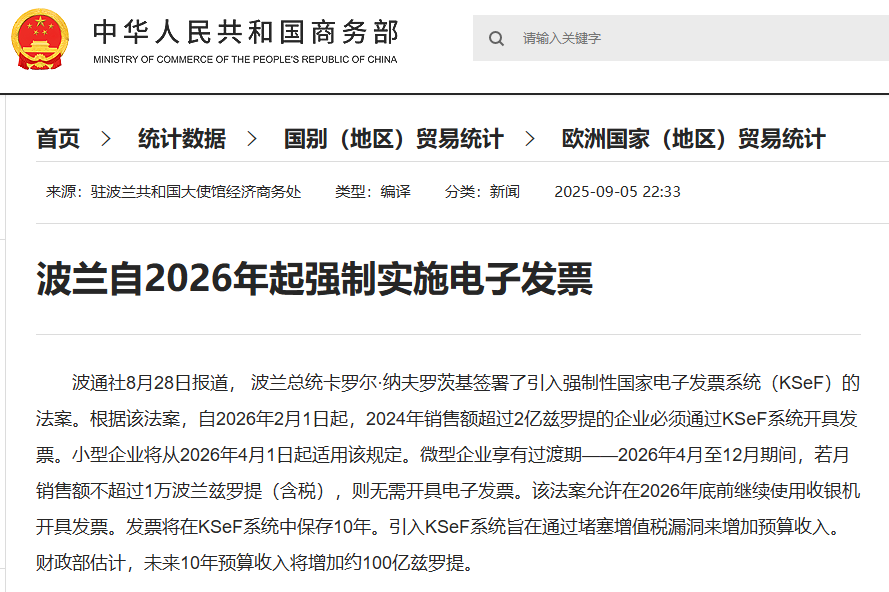 覆盖范围扩展至所有增值税纳税人,包括中小企业、在波兰设有常设机构的外国企业及跨境卖家。