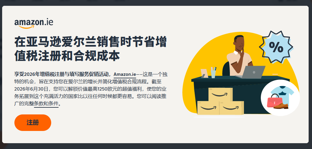 为降低卖家市场准入门槛,亚马逊官方推出爱尔兰 VAT 税务合规专项补贴。
