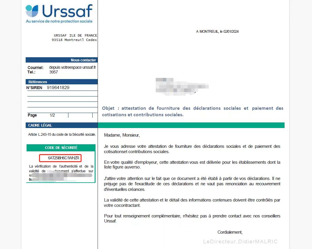 5)法国雇员挂靠、社保申报ATTESTATION DE VIGILANCE文件。