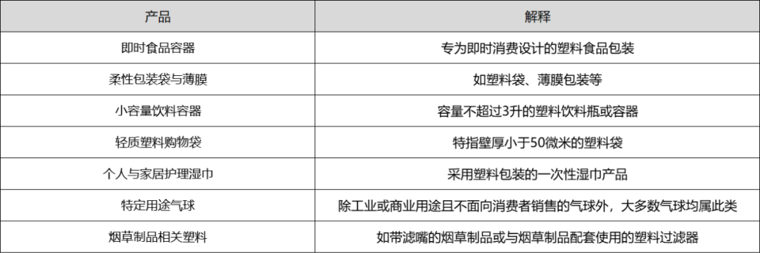 简单来说就是,一次性塑料商品不会退还给制造商或分销商重新灌装,也不会重新用于其原本的制造用途,仅用于其原始用途一次。