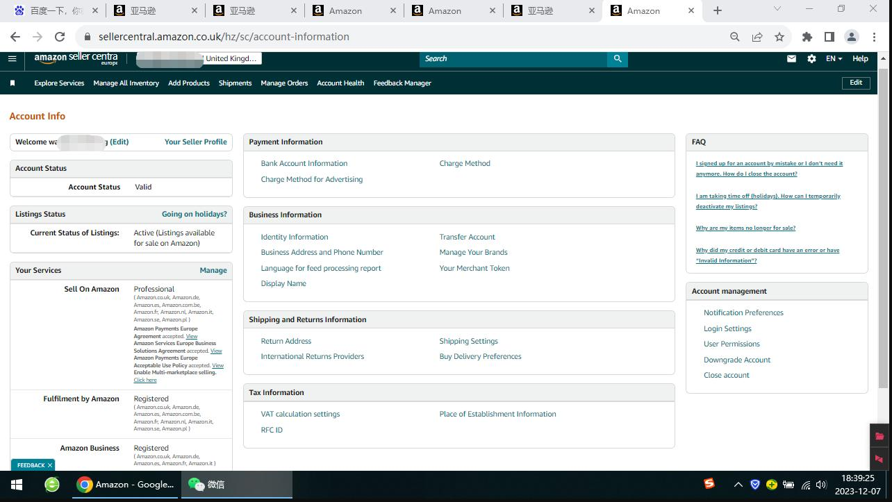 a.Welcome 后面的店铺名和上方店铺名都要和亚马逊后台一致