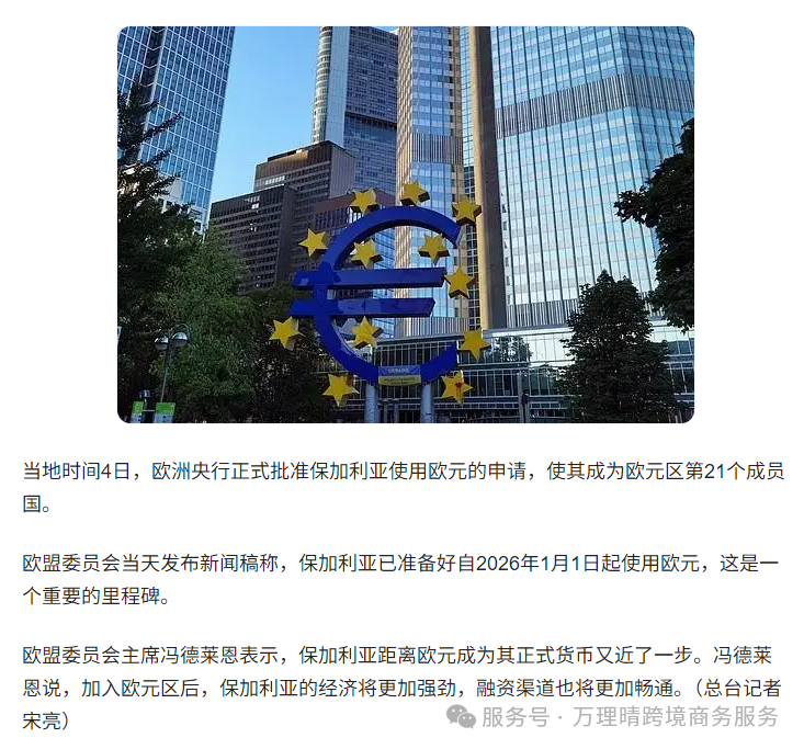 统一用欧元,和其他欧元区国家贸易更顺畅,跨境电商轻松把生意做到更多国家。而且保加利亚经济形象加分,能吸引更多合作和客户。