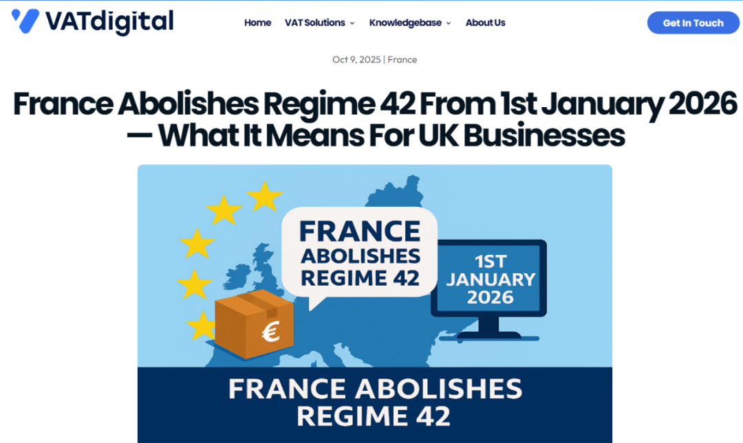 有消息称,法国自2026年1月1日起,实施数十年的非欧盟企业增值税简化清关机制——Regime 42(对应海关程序代码CPC 4200)将正式废止。