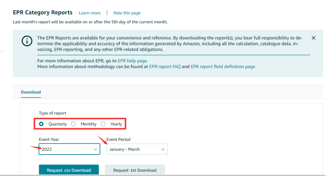 A: 在亚马逊平台,卖家登录卖家中心后,进入 “数据报告” 板块,选择 “亚马逊增值税交易报告”,在创建报告时指定 “生产者责任延伸报告” 即可完成下载。
