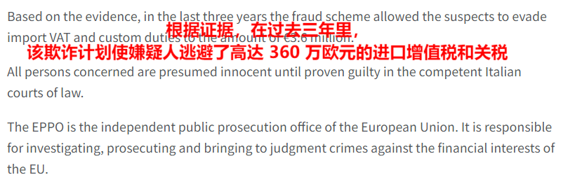 EPPO 公告明确指出,该犯罪团伙通过三年运作造成欧盟 360 万欧元税收流失,而这仅是冰山一角。