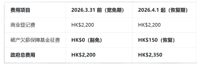 中国香港地区的商业登记征费宽免政策将于 3 月 31 日正式到期,4 月 1 日起恢复 150 港元征费征收。