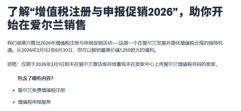 把握窗口期:计划拓展爱尔兰市场的卖家,需在 2026 年 6 月 30 日前锁定补贴福利,降低合规成本。