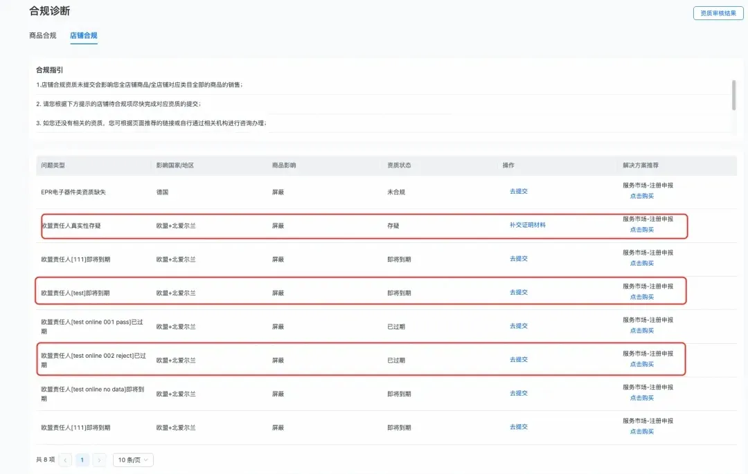 卖家需定期登录商家后台“合规管理” 板块,查看欧代有效期提醒(到期前 1 个月系统将触发黄色预警),若显示 “已失效” 需立即补充上传有效欧代协议完成验真。